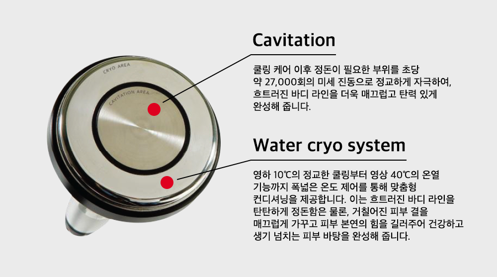 케비테이션(cavitation)이란?초음파 에너지를 특정 부위에 집중시켜 미세한 공동(Micro-bubbles)을 발생시키고, 이 기포가 터지면서 발생하는 압력파를 통해 바디 관리에 도움을 주는 첨단 기술