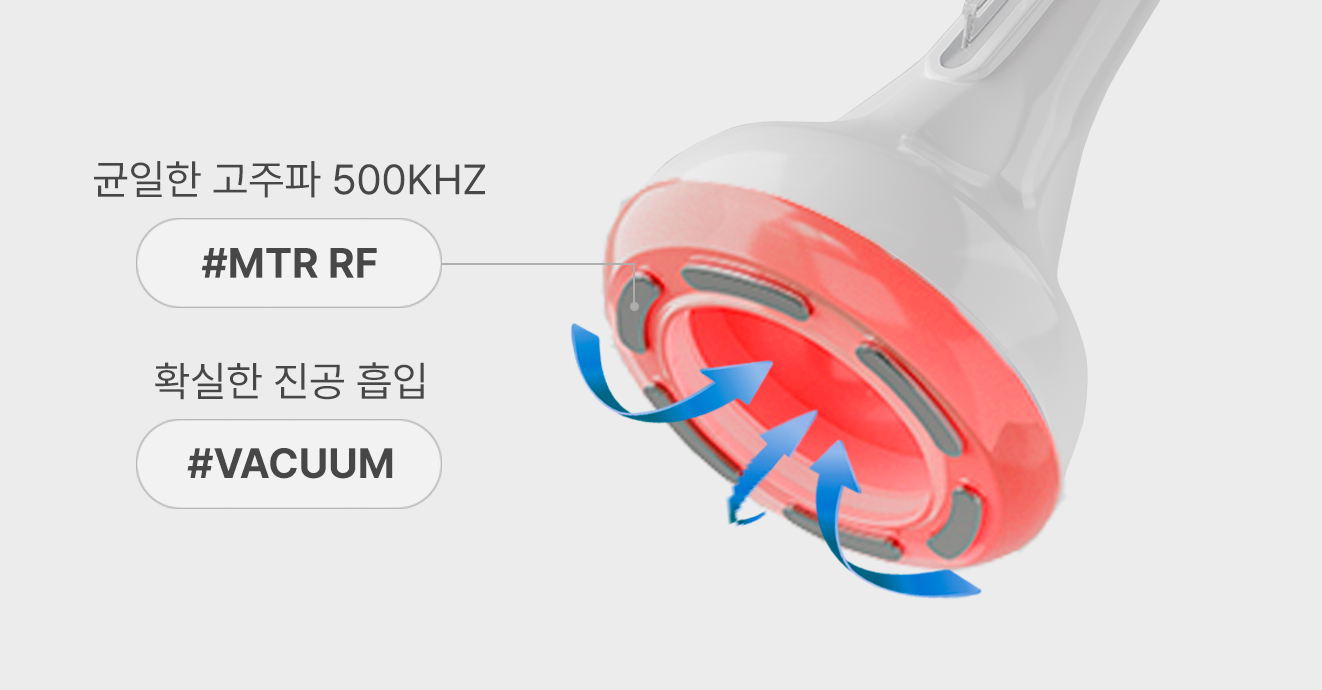 강력한 진공 마사지 효과 정체된 신체 흐름을 원활하게 유도하여 노폐물 배출을 돕고 붓기 관리에 도움을 줍니다. 고주파 에너지에 의한 열 자극이 피부 속 탄력 섬유인 콜라겐과 엘라스틴의 활성화를 촉진하여, 관리 후 즉각적인 타이트닝 효과와 함께 매끄럽고 탄탄한 바디 라인을 완성하는 차별화된 결과를 선사합니다.